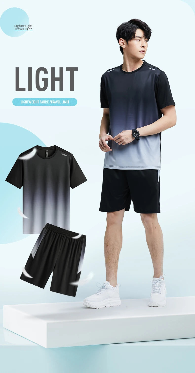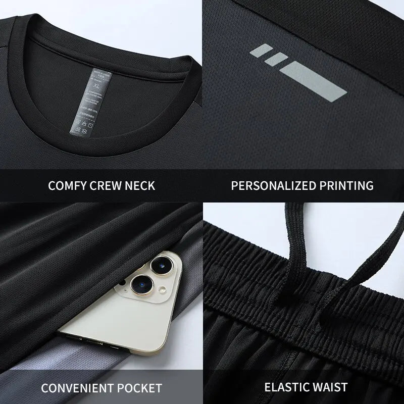 “Flexoora Men’s Ice-Silk Quick-Dry Gym Set – T-Shirt...